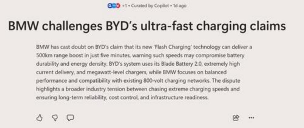 说到底,这场隔空互怼根本不是技术之争,而是市场之争。比亚迪用一套从电池到充电桩到建站网络的完整方案,正在把“充电焦虑”这个词从电动车的字典里删掉。而宝马还在跟宁德时代谈电芯采购价格。差距就在这儿,不是扯毯子能盖住的。