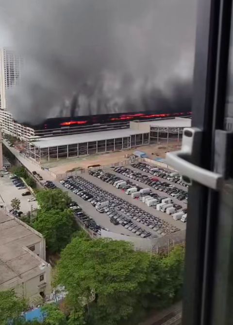 家住比亚迪坪山园区附近马峦街道的张先生,是这场火情的第一目击者。“大概凌晨快三点,我先听到几声‘砰砰’的闷响,像是轮胎爆炸或金属变形的声音,一开始还以为是打雷。”他回忆道,拉开窗帘后,眼前的景象让他心头一紧——比亚迪厂区方向半边天被染成红色,滚滚黑烟持续蔓延,空气中弥漫着刺鼻的烧焦味,吓得他赶紧关上窗户。另有早起晨练的居民表示,当时马路上停满了消防车和警车,多条道路实施临时交通管制,现场氛围十分紧张。