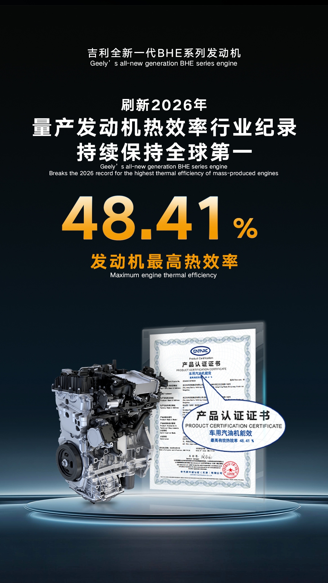 吉利此次发布的i-HEV,定位明确——不插电的油电混动系统,主打“无充电焦虑+极致低油耗”,直接瞄准丰田THS、本田i-MMD长期垄断的HEV市场。从核心技术参数来看,其亮点确实足够吸睛:搭载的BHE系列混动专用发动机,经中汽中心认证,峰值热效率达到48.41%,这一数字不仅刷新了量产发动机的行业纪录,更远超丰田动态力发动机的41%、本田e:HEV发动机的同级水平。